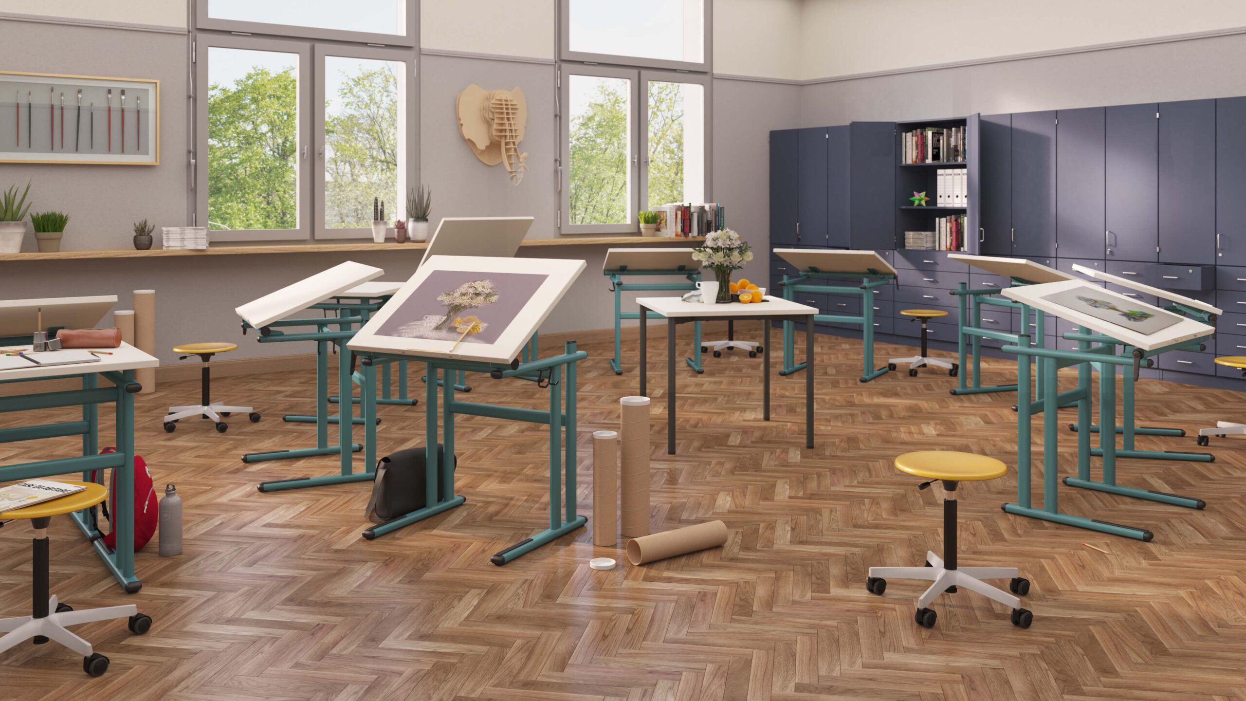 Large work surfaces for ambitious projects, organized storage that keeps supplies within reach, and mobile elements that let teachers provide guidance exactly when students need it most.