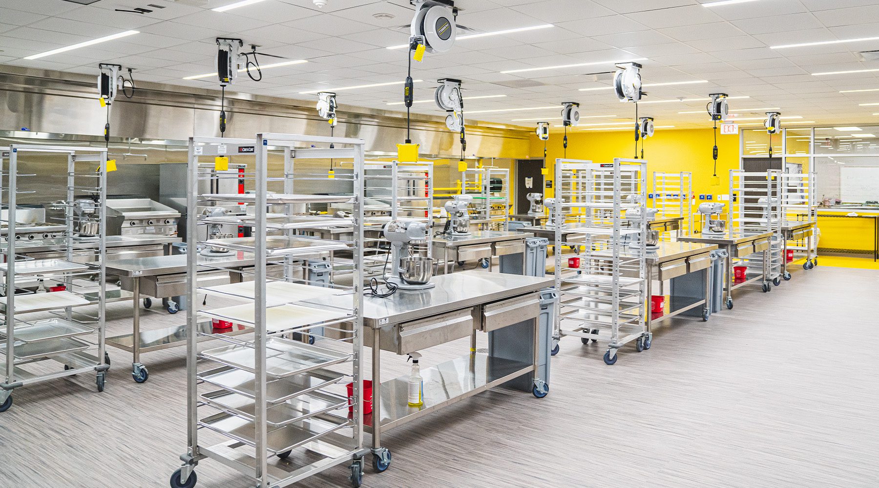 Commercial-grade kitchen stations mirror real workplace environments with modern culinary tools.