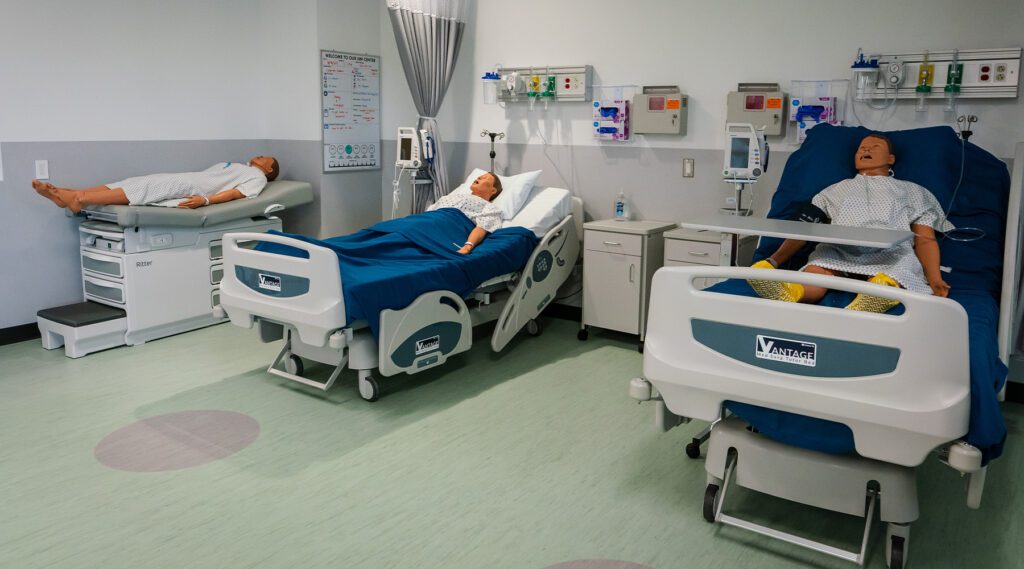 Medical simulation labs with hospital-grade equipment prepare students for essential healthcare support roles.