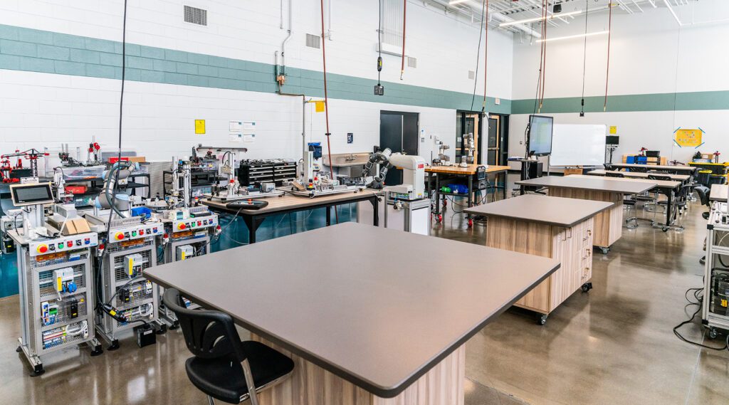 Students gain hands-on experience with automation technology for high-demand robotics careers.