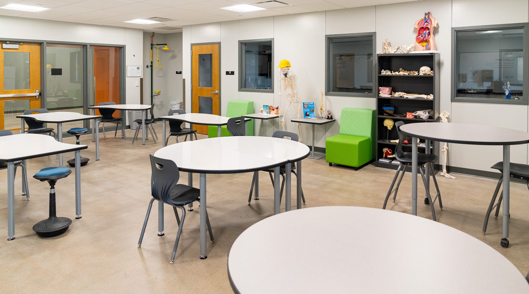 Our secondary learning environments are thoughtfully tailored to support the unique instructional needs of each subject area, with flexible furniture configurations and features that enhance relevant skills. Designed to provide ongoing support for both teachers and students, each space aligns with our ProSocial Learning Framework, promoting real-world collaboration and social, emotional, and intellectual safety