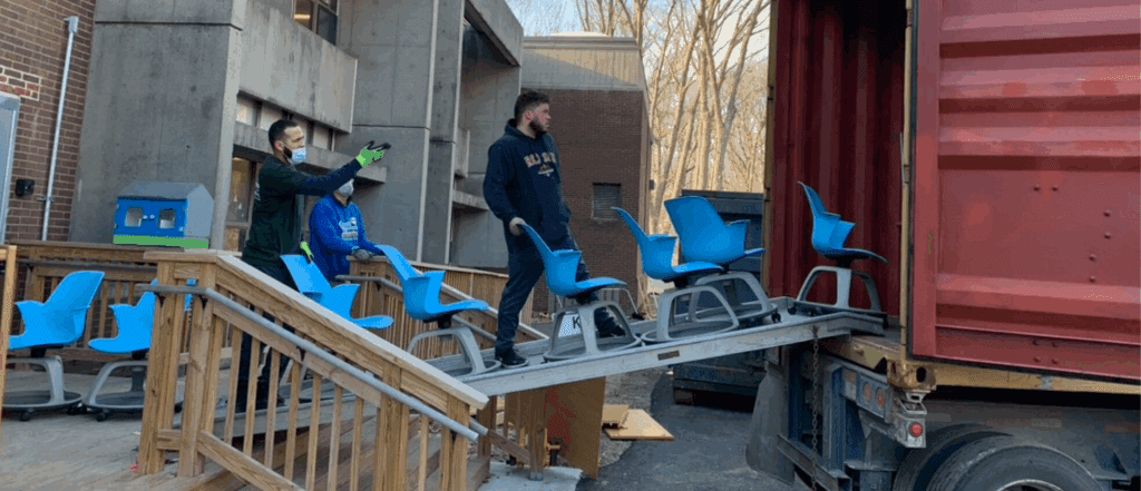 On this project, making the right match with the right recipients on a rigid schedule was the most serious challenge. School furnishings are in high demand among IRN’s international charitable partners. But Denver is 1,000 miles from the nearest port, and the cost of overland shipping was prohibitive. As much as possible, the furniture needed to be placed nearby.