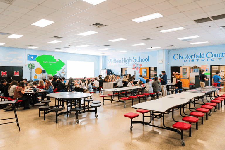 Chesterfield County refreshed every cafeteria, creating flexible spaces for meals, gatherings, and school pride.